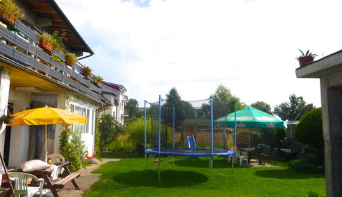 Dla dzieci mamy natomiast huśtawkę, zjeżdżalnię, małą piaskownicę i trampolinę.